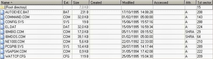 Le premier disque étudié contient visiblement le logiciel embarqué dont on remarquera qu'il a été effacé plusieurs fois sur le support ayant servi à générer l'image intégrée dans la mémoire Flash. Le second disque contient le système d'exploitation MS-DOS, les gestionnaires de périphérique VGA et Ethernet et la configuration IP associée; configuration contenant une adresse routable qu'il faudra modifier.