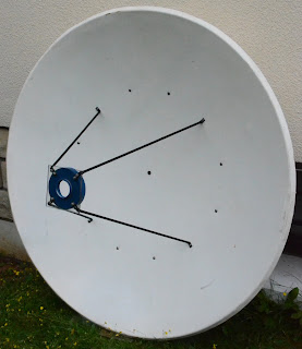 Un de mes amis m'a donné une parabole prime focus de 1.54m provenant probablement d'un faisceau hertzien. Son transport s'est déroulé sans grand problème, la parabole ayant été installée retournée sur le toit de la voiture et correctement sanglée.